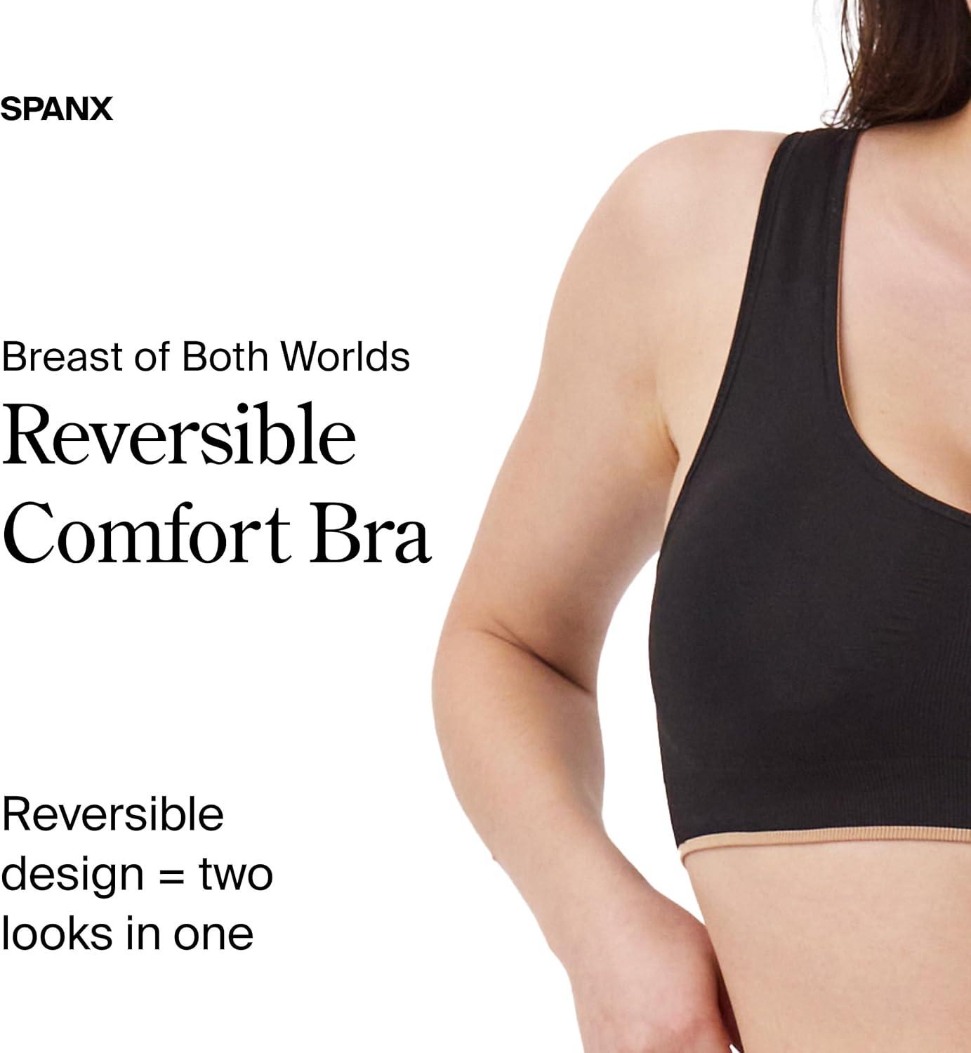 SPANX Breast of Both Worlds Reversible Comfort Bra – Wireless, Seamless Bra – Reversible Design – Wire-Free Comfort(Black/Barely)