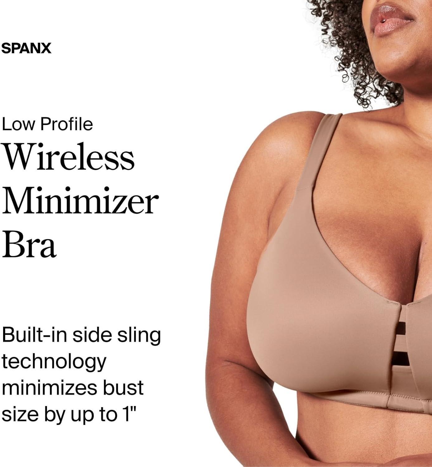 SPANX Low Profile Wireless Minimizer Bra – Minimize Breast Size by Up to 1 Inch – Breathable, Quick-Drying Fabric(Cafe Au Lait)