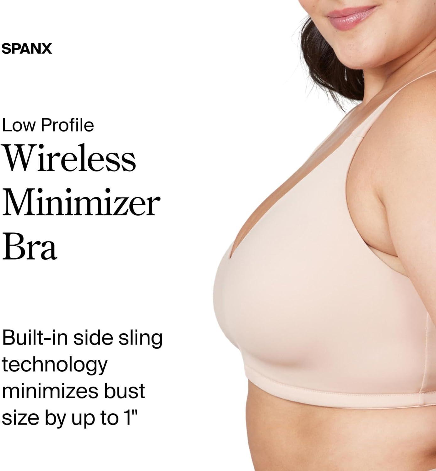 SPANX Low Profile Wireless Minimizer Bra – Minimize Breast Size by Up to 1 Inch – Breathable, Quick-Drying Fabric(Champagne Beige)