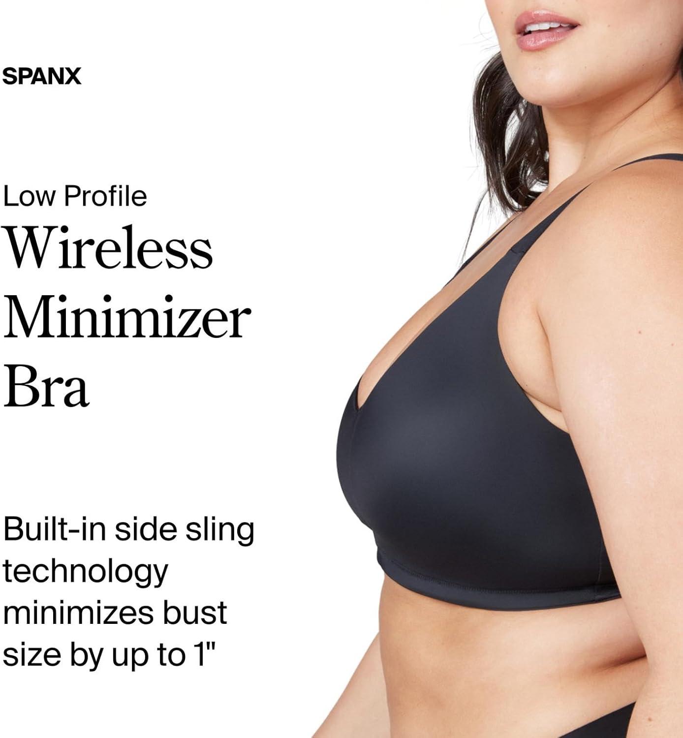 SPANX Low Profile Wireless Minimizer Bra – Minimize Breast Size by Up to 1 Inch – Breathable, Quick-Drying Fabric(Very Black)