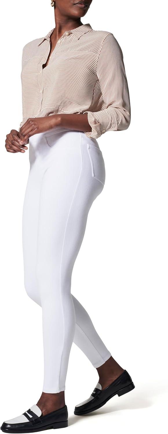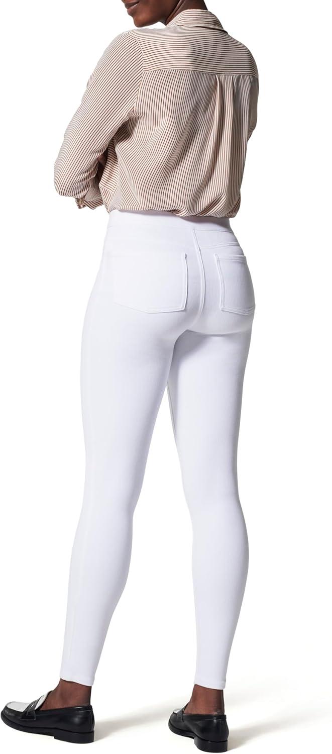 SPANX Jean-Ish Ankle Leggings – Stylish Everyday Leggings – Classic Jean Look – Hidden Core Shaping – Comfortable Denim Alternative – White – Petite, 24.5 Inch Inseam – Large