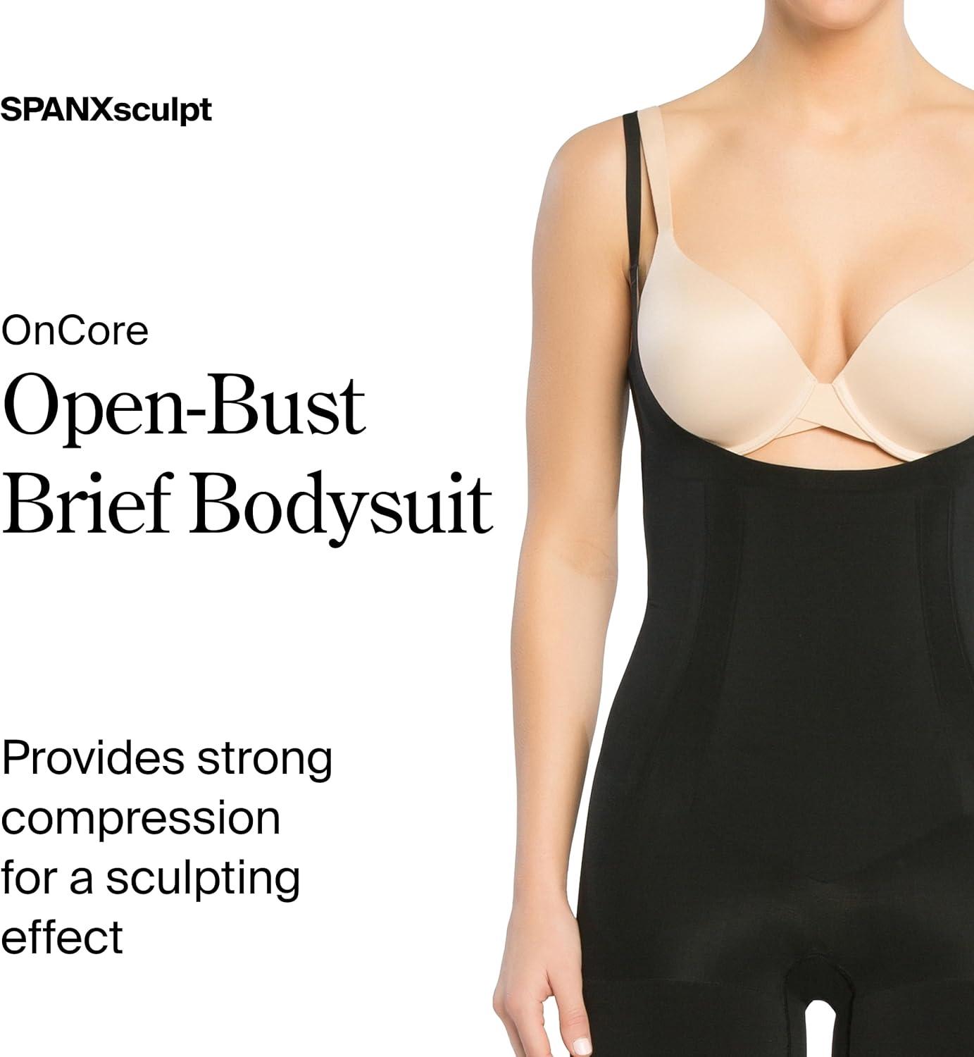 SPANX SPANXsculpt OnCore Open-Bust Mid-Thigh Bodysuit – Powerful Compression Body Shaper – Comfortable Shapewear – Adjustable Straps – Very Black – Medium