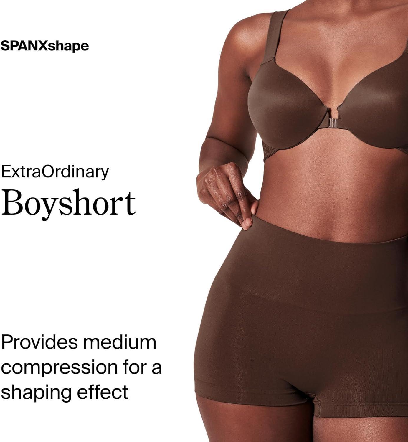 SPANXshape ExtraOrdinary Boyshort – Sculpting Compression – Women’s Shapewear Underwear – Recycled Nylon Fabric Blend(Chestnut Brown)