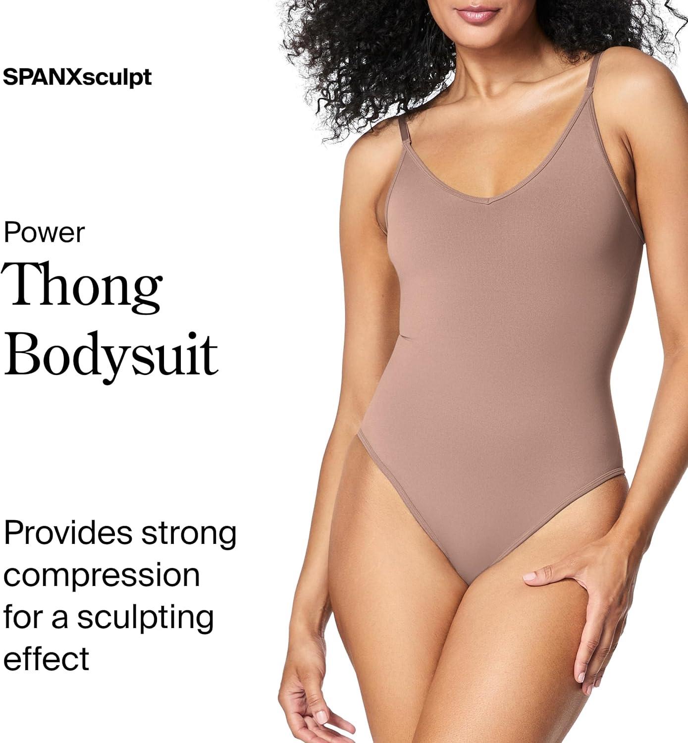SPANXsculpt Seamless Power Thong Bodysuit – Soft, Seamless Shapewear for Women – Adjustable Straps – With Snap Closure(Cafe Au Lait)