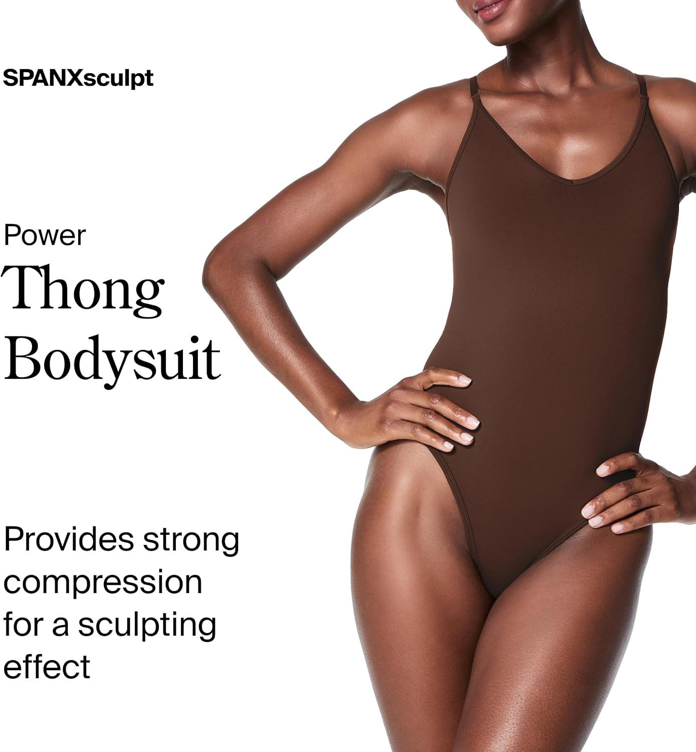 SPANXsculpt Seamless Power Thong Bodysuit – Soft, Seamless Shapewear for Women – Adjustable Straps – With Snap Closure(Chestnut Brown)