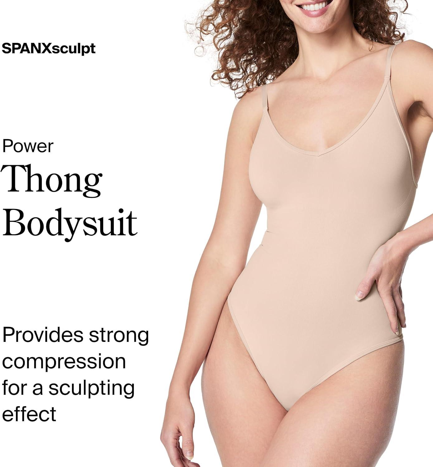 SPANXsculpt Seamless Power Thong Bodysuit – Soft, Seamless Shapewear for Women – Adjustable Straps – With Snap Closure(Soft Nude)