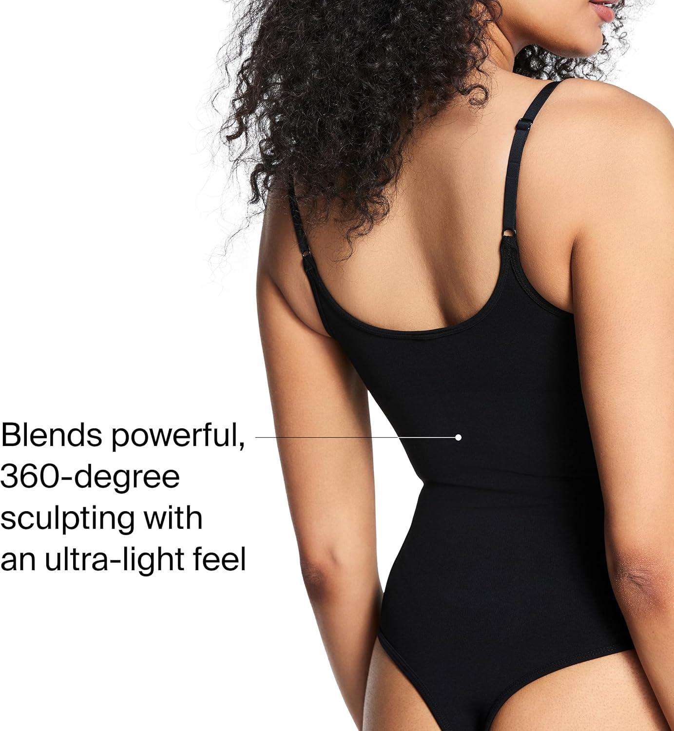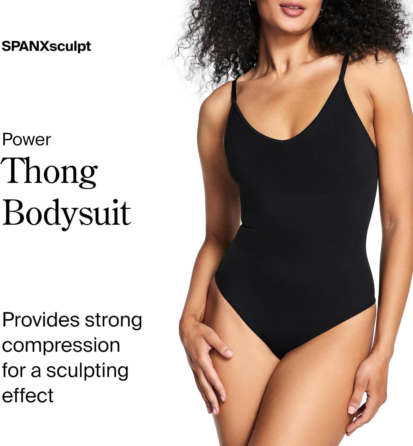SPANXsculpt Seamless Power Thong Bodysuit – Soft, Seamless Shapewear for Women – Adjustable Straps – With Snap Closure(Very Black)